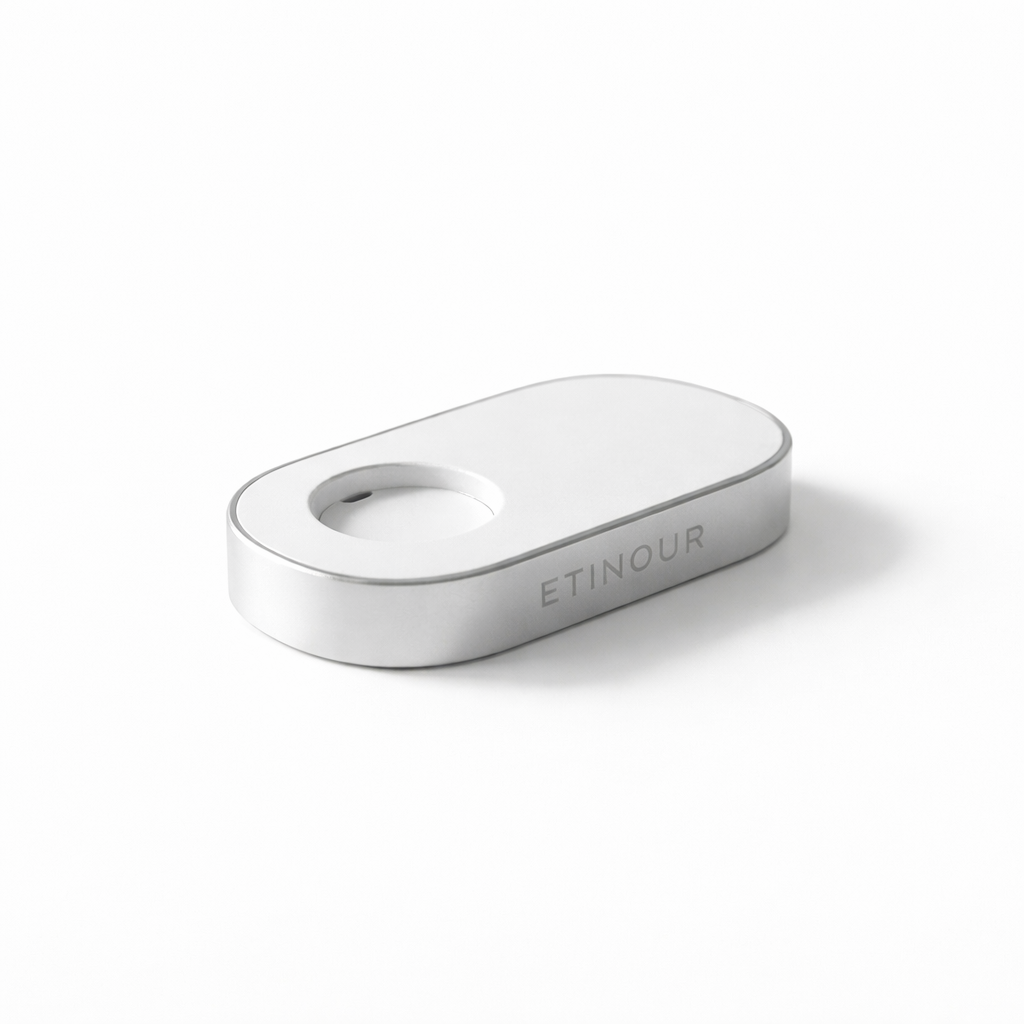 Eira provides over 30 days of battery life on a single charge, based on twice-daily use (2 minutes). A magnetic charging base is included.